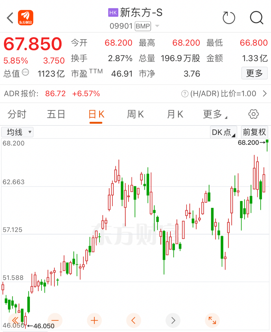 其中,港股教育板块龙头——新东方大涨5.85%,卓越教育集团、源宇宙教育均大涨超6%。