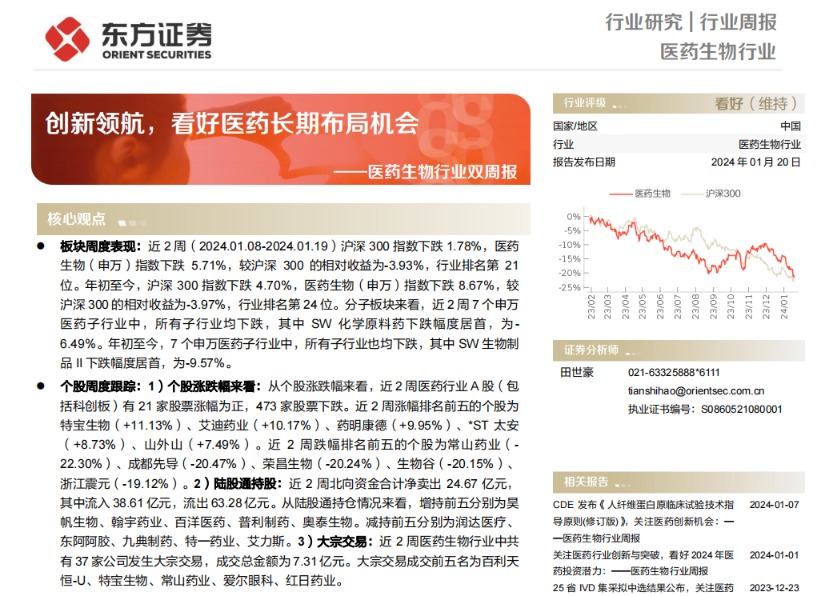 【研报推荐】创新领航 看好医药长期布局机会